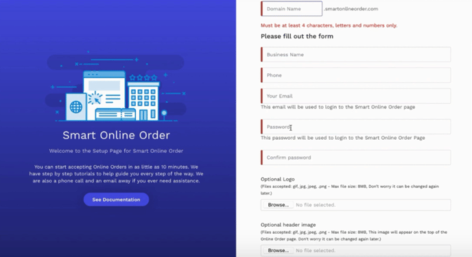 Once you've filled out the form, click "Submit" to create your Smart Online Order subdomain.